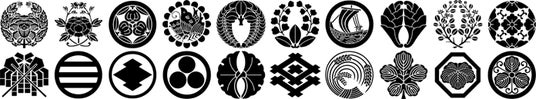 家紋図柄(モチーフ)141種類・1,200点を収録。家紋は種類別、50音別、家紋名で探せます。
