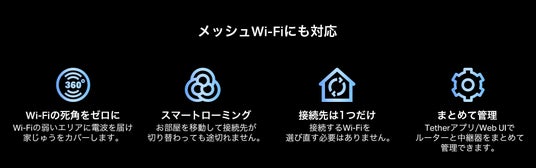 ・ EasyMesh*8:EasyMesh対応ルーターや中継器と連携させることで手軽にメッシュ化を実現