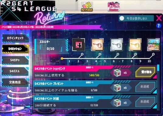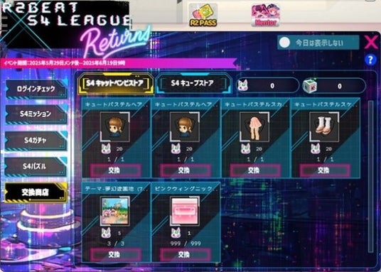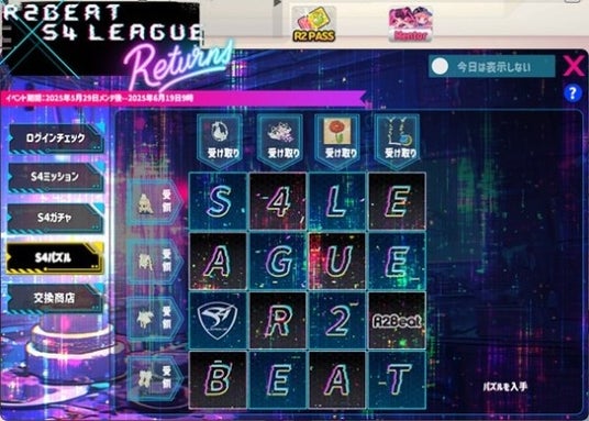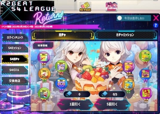 株式会社G・O・P[本社:東京都新宿区、代表取締役社長:申 載明 (シン・ジェミョン)]は、PC向け音楽ゲーム『R2BEAT(アール・ツー・ビート)』において、2025年5月29日(木)より、アクションシューティングゲーム『S4 League』とのコラボレーションイベントを開始いたしました。コラボ期間中は、『S4 League』の楽曲を楽しみながら、ログイン報酬やミッション、限定ガチャ、パズルイベントなど多彩なコンテンツを体験いただけます。また、コラボと同時に46曲の新規楽曲と116種の新アイテムを追加し、ゲーム内の楽しみを大幅に拡充しています。