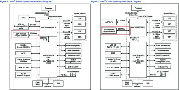 CSAという名称が明らかになるずっと前、2000年の頃からインテルがノースブリッジに新しいI/Fを追加する、という噂は上がっていた。ただそれがなんのI/Fなのかは不明のままであり、AGPに代わるグラフィックスI/Fなのか、それとも追加のメモリーI/Fなのか、などといろいろ取りざたされていたのだが、2001年にはインテルが後にPCI Expressとなる3GIO(3rd Generation IO)をIDFで公開しており、「どうもグラフィックス I/Fではないようだ」(3GIOの中に、明確にグラフィックス接続が目的として掲げられている)ということは見えてきはじめていた。