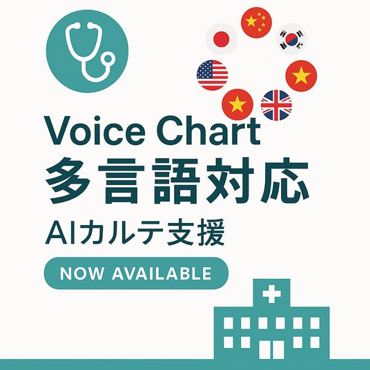 多言語対応版「ボイスチャート」は、医師と外国人患者の診察時の会話を録音し、最新のAI技術を用いて自動的にSOAP形式の日本語カルテテキストを生成するサービスです。英語、中国語、韓国語、ベトナム語など主要言語に対応し、医療現場における言語バリアの解消と業務効率化を同時に実現します。