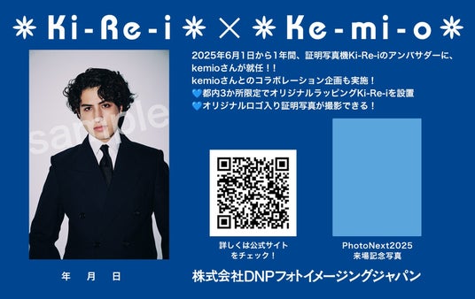 ○記念写真: 展示会場では、6月1日付で「Ki-Re-i」の初代アンバサダーに就任したタレントkemioさん*3の記念写真台紙がプリントできます。