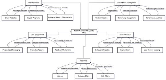 UXLINKのAI Growth Agent(AGA)は、複数のAIモデルを駆使し、Web3ユーザーの獲得とコミュニティ拡大を次のレベルへと引き上げるツールです。具体的には、以下のような機能を提供します。