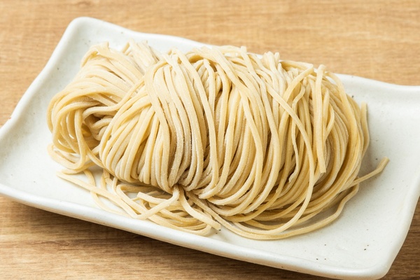 麺は茨城産小麦・ゆめかおり100%の中細ストレート。表面がなめらかで喉越しがよく、スープとの相性もバッチリ。すするたびに麺に絡んだ塩豚骨の旨味が広がっていく。パン用の強力粉のため、食感がしっかり。モチモチで小麦の味も実感できる。
