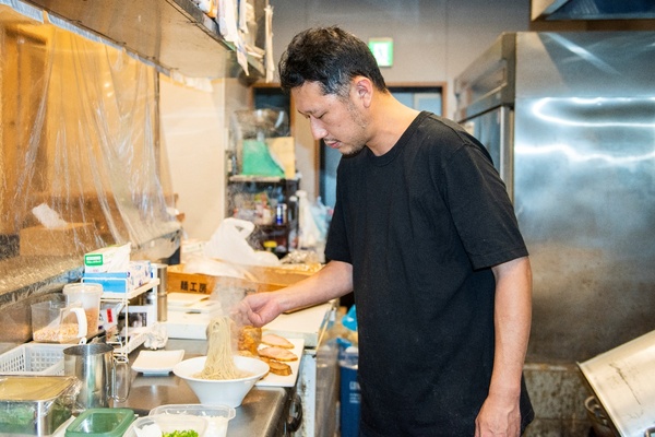 店主の冨田さんはラーメン職人歴20年。水戸市にあった「らあめん吟。(ぎんてん)」(閉店)で4年間修業したあと、居酒屋「房・S(ぼうず)」(水戸市・閉店)に移り、店長を任された。「元々ずっとラーメン屋志望でした。その店は居酒屋でしたが、ラーメンも自由に作っていいということだったのでいろいろ挑戦しました」(冨田さん)。当時は豚骨魚介ラーメンを得意とし、シメで出していたところ評判となり、ランチ営業を始めるなど、いつしかラーメンが主体の店になっていった。そして8年間じっくり腕を磨いたのち、満を持して独立。2016年に「らぁめん 蓮華」をオープンさせた。