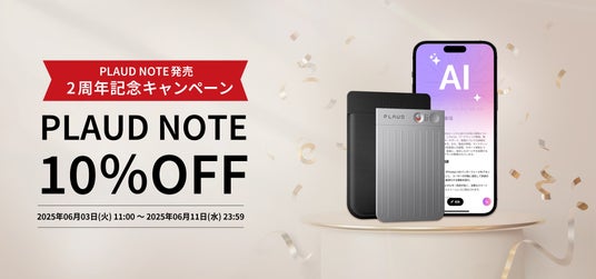 AIボイスレコーダーと業務効率化ソリューションのリーディングブランドであるPLAUD.AI(本社: PLAUD Inc. 所在地:米国サンフランシスコ)は、「PLAUD NOTE」の発売2周年を記念し、2025年6月3日(火)11:00より期間限定キャンペーンを開催いたします。