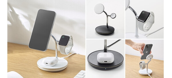 新発売の3in1ワイヤレス充電スタンドは、iPhone、Apple Watch、AirPodsを日常的に使用するAppleユーザーに最適のアイテムだ。MagSafe対応で、充電する際にマグネットで磁石にぴったり固定し、デバイスがずれることなく安定した充電を提供する。