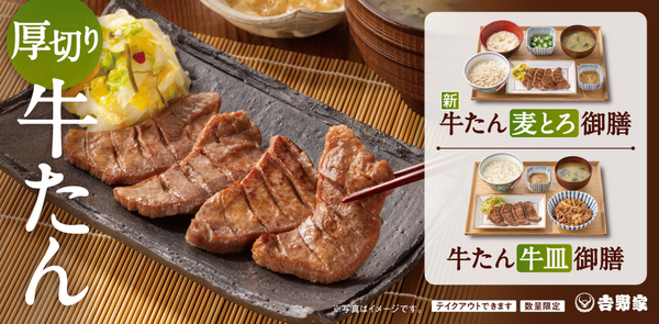 吉野家は6月5日11時から、夏季限定商品「牛皿麦とろ御膳」を全国の店舗で販売します。「牛たん麦とろ御膳」「牛たん牛皿御膳」も登場。
