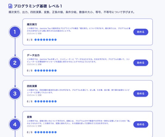 初心者向けプログラミング学習サービス「Jasmine Tea」にレベル別学習コースが新登場