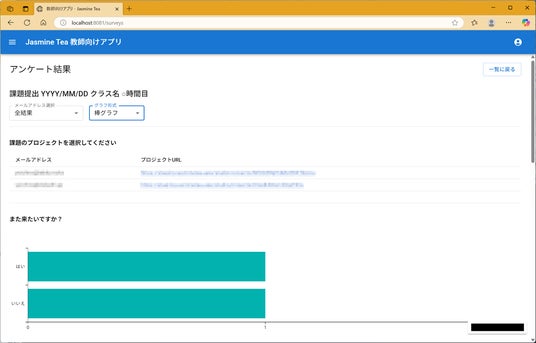 現在、「Jasmine Tea」では教育機関向けに、クラスや生徒を管理できる機能、生徒にアンケートフォームを作って回答してもらい集計結果を見ることができる機能、そして生徒からの質問に対応できるQ&A機能などを提供しております。