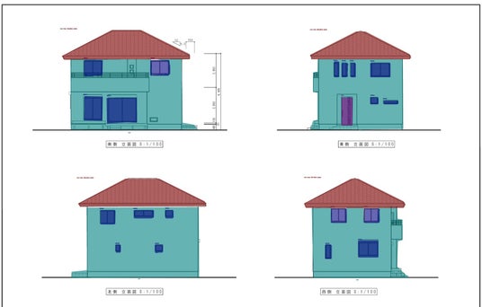 AIが建築図面を解析し、壁・屋根・窓・ドアなどの各建築部位を色分けして表示