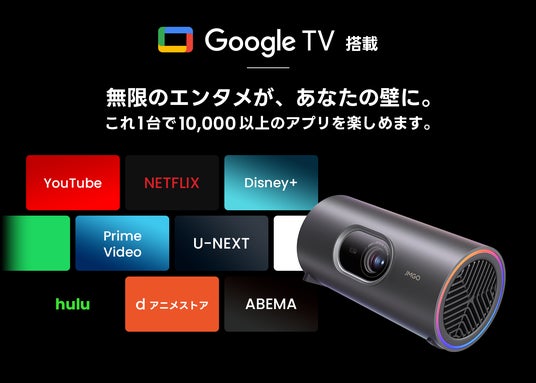 対応アプリ:YouTube、Netflix、Prime Video、Disney+ ほか