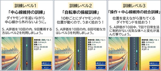 訓練プログラムは、3つのゲームモード「訓練レベル1」「訓練レベル2」「訓練レベル3」を活用します。