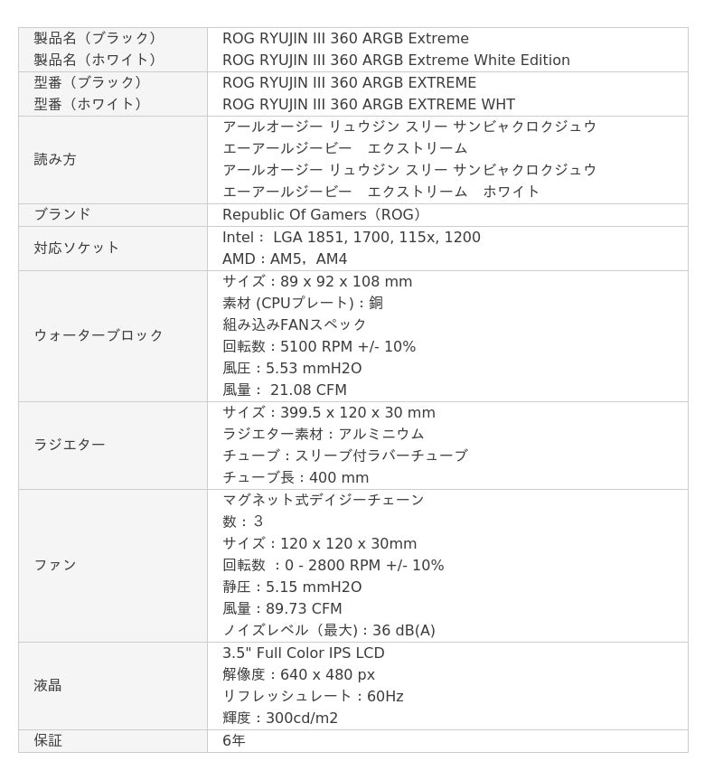 「ROG RYUJIN III 360 ARGB EXTREME」「ROG RYUJIN III 360 ARGB EXTREME WHT」