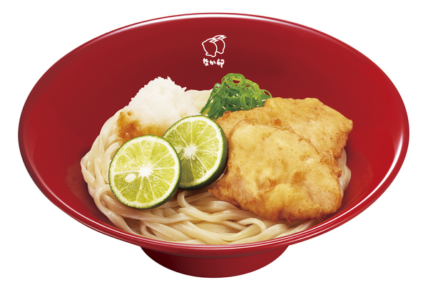 なか卯特製のしょうゆだれに、のど越しのよい細切りうどん、大根おろしを組み合わせた一杯に、すだちを搾ることで程よい酸味が加わり、清涼感のある味わいに仕上がっています。