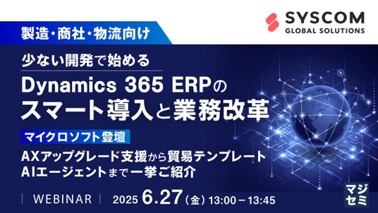 マジセミ株式会社は「【製造・商社・物流向け】少ない開発で始めるDynamics 365 ERPのスマート導入と業務改革 」というテーマのウェビナーを開催します。