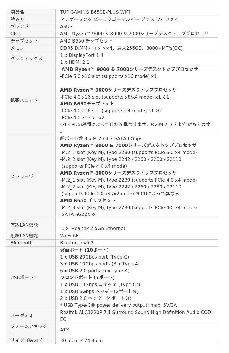 ASUS JAPAN株式会社は、AMD B650チップセット搭載PCIE5.0、M.2 PCIE5.0に対応したATXマザーボード「TUF GAMING B650E-PLUS WIFI」を発表しました。2025年6月6日(金)より販売開始します。