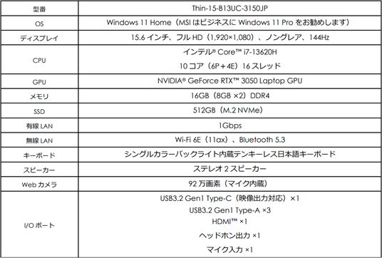 ・Thin 15 B13Uシリーズ製品ページ:https://jp.msi.com/Laptop/Thin-15-B13UX