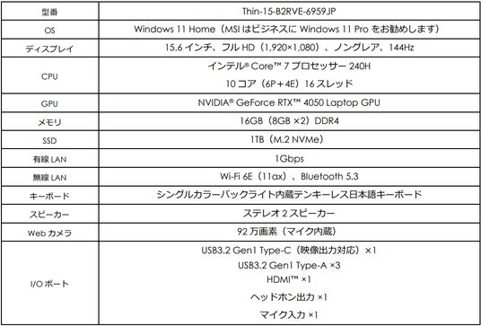 ・Thin A15 B7Vシリーズ製品ページ:https://jp.msi.com/Laptop/Thin-A15-B7VX