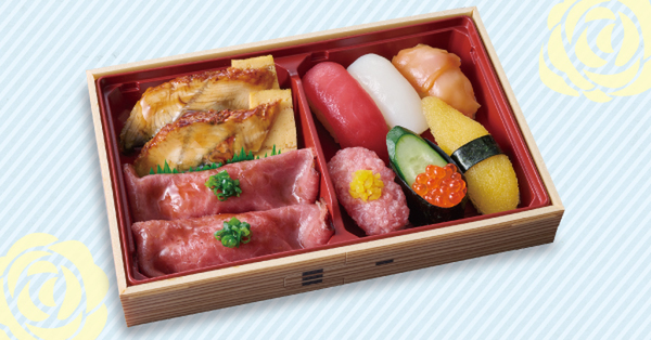 なかでも「感謝贅沢にぎり盛」は、一本穴子や特撰牛肉を使った見た目にも豪華な一人前で、父の日の特別感を演出します。