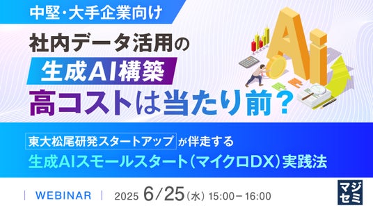 マジセミ株式会社は「【中堅・大手企業向け】社内データ活用の生成AI構築、高コストは当たり前?」というテーマのウェビナーを開催します。