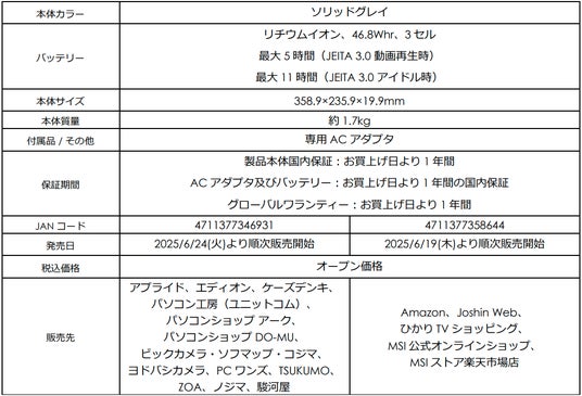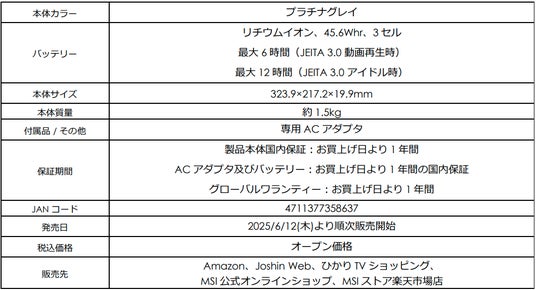 この度、エムエスアイコンピュータージャパン株式会社は、MSIビジネスノートPCのメインストリームモデル「Modern」シリーズのラインアップを充実させるべく、NPU搭載モデルの「Modern 15 H AI C2HM」をはじめ、オフィス搭載モデルや高コスパモデルなどを「Modern 15 F」と「Modern 14 F」シリーズにて展開し、合計7モデルを2025年6月12日(木)より順次発売いたします。
