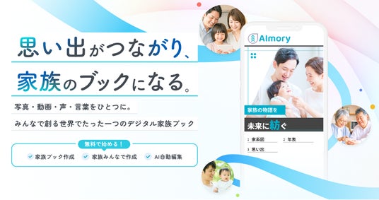 カナイゴト株式会社(本社:東京都港区、代表取締役:金井敦史)は、家族の思い出をAIがストーリー化し、1冊の“家族ブック”を作成できる新アプリ『AImory(アイモリー)』を2025年6月7日(土)に正式リリースいたします。