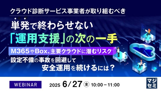 マジセミ株式会社は「クラウド診断サービス事業者が取り組むべき、単発で終わらせない「運用支援」の次の一手」というテーマのウェビナーを開催します。