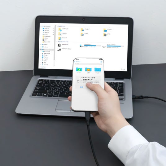 データ転送対応データ転送に対応しているので、スマートフォンからノートPCに写真や動画などを移動できます。