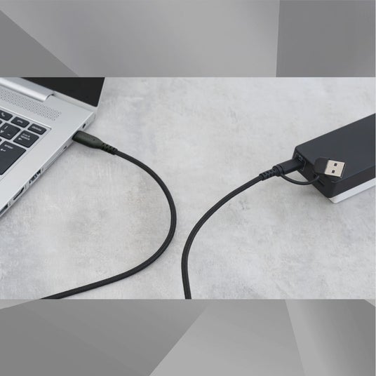 USB Type-A、USB Type-C機器で使える2 in 1ケーブル本製品はUSB Type-Aポート搭載機器またはUSB Type-Cポート搭載機器で使える2 in 1ケーブルです。通常時はUSB Type-C to Type-Cケーブルとして、USB Type-A変換アダプターを装着すれば、USB Type-A to Type-Cケーブルとしてお使いいただけます。