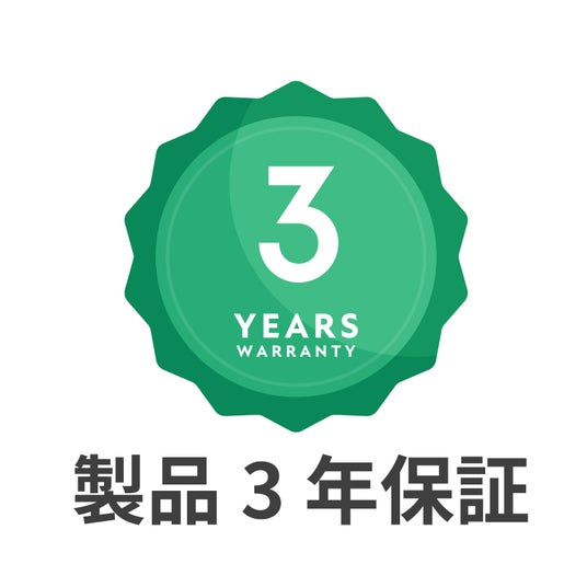 安心の3年保証本製品は3年保証がございます。ご使用中に万が一不具合などが発生した場合、保証期間内であれば無償で交換を保証いたします。お客様が安心して長くお使いいただける製品品質と併せて、サポート体制にも力を入れております。
