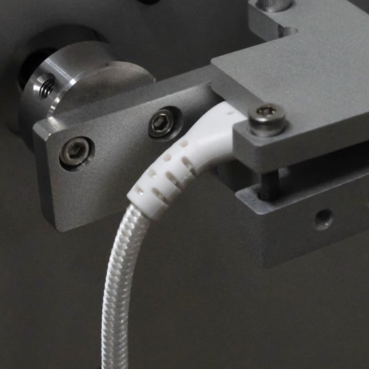 10万回以上の折り曲げ試験をクリア弊社独自の厳しい条件下で10万回以上の屈曲試験を行っても断線が見られなかった、非常に耐久性の高いケーブルです。特に断線しやすいコネクター付け根(ブッシュ)に4方向スリットを入れてカバー範囲を広く取ることで、長く使える堅固な造りに仕上げました。