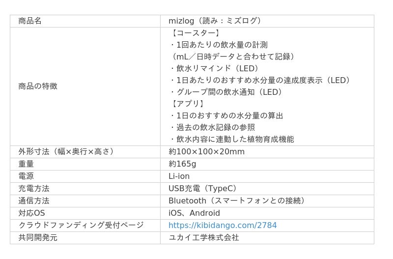 「mizlog」のクラウドファンディングは、KibidangoおよびGREEN FUNDINGにて、目標金額を達成しないと商品化することができない“All or Nothing形式”で実施いたします。