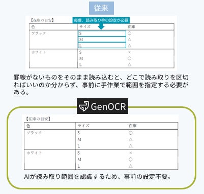 面倒な読み取り範囲の設定不要。罫線なしの表も自動で読み取る「ジンベイGenOCR」が業務現場の声に対応