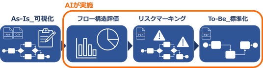 新サービスでは、BPM+で作成した業務フローをAIが自動解析し、以下の3つをアウトプットします。