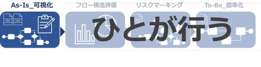 フロー作成後の「業務稼動の構造可視化」「リスクマーキング」「標準フローの作成」などは、「ひと」が行う必要がありました。