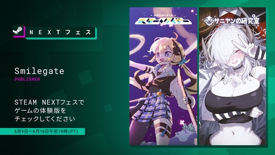 スマイルゲートがパブリッシングする2本のインディーゲーム『サニヤンの研究室』と『シクスターゲート:スターゲイザー』が、6月10日(火)から6月17日(火)まで開催されるグローバルゲームイベント「Steam Next フェス」に出展され、全世界のユーザーに最新のゲーム体験とフィードバックの場が提供されます。