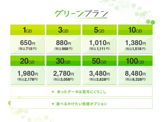 また、従来のプランでは5分間のかけたい放題がセットになっていましたが、「グリーンプラン」ではお客さまのご利用状況に合わせて国内通話オプションを自由に選択できるようになりました。