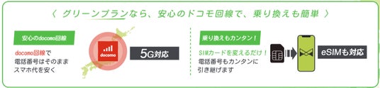 5Gに対応した安心のドコモ回線を利用しています。電話番号はそのまま、毎月のお支払い料金を安くすることができます。他キャリアからの乗り換えは、SIMカードを変えるだけで、電話番号も簡単に引継ぎ可能です。