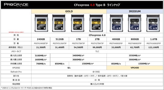 CFexpress 4.0 Type B GOLD 240GBメモリーカードを販売開始