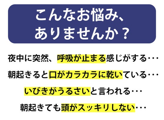 「いびきがうるさい」と言われた方、朝の喉の渇きや疲れ残りに心当たりのある方は、早めの対策をおすすめします。