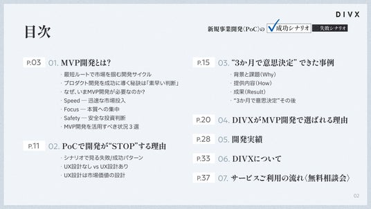 DIVX、ホワイトペーパー「新規事業開発〈PoC〉の“成功シナリオ”、“失敗シナリオ”」を公開。3か月で経営判断に至ったMVP開発の成功事例や、AIを活用した短期PoC支援を紹介