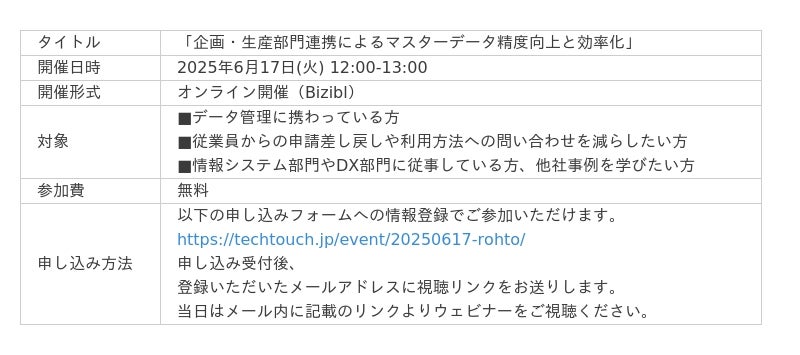 お申し込みはこちら:https://techtouch.jp/event/20250617-rohto/