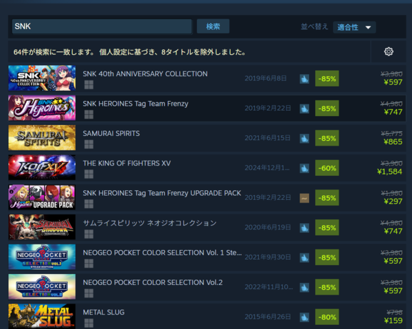 【最大85%オフ】SNKゲームがヤバい価格に 特価セール、Steamで開催中