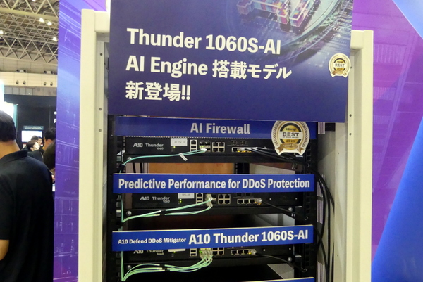 A10ネットワークスは、ロードバランサーやファイアウォールを手がける北米のネットワークベンダー。「Always Secure, Always Available」を掲げ、専用OS「ACOS」をベースにしたアプライアンス製品を展開している。そんな同社がネットワークの祭典「Interop Tokyo 2025」で展示したのが、AIで守り、AIのリスクを低減するAIファイアウォール「Thunder 1060S-AI」だ。