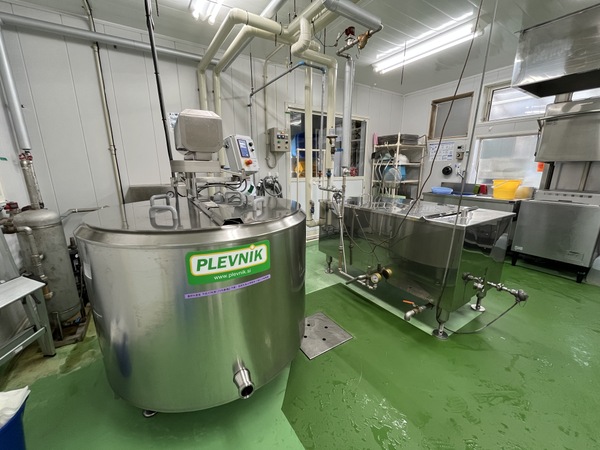 お店は工房と販売スペースが一緒になっていて、ときおりチーズ職人の方の姿を見ることができます。今回は特別に工房の中を見せてもらえるとのことで、わくわくどきどき。