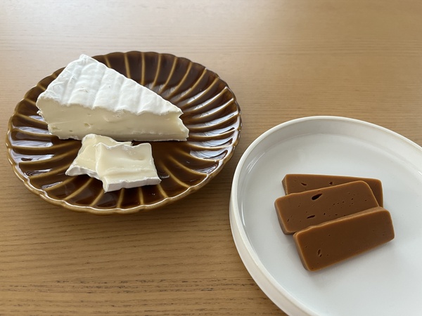 いくつか試食させてもらい、2種類のチーズを購入しました。一つ目は「ブラウンチーズ」。ヨーグルトの上などに出てくる水分「ホエイ」を使ったチーズで、茶色い色をしているのが特徴です。ひと口食べると、キャラメルのような濃厚さ。甘いだけでなく酸味もあり、初めて食べる味!