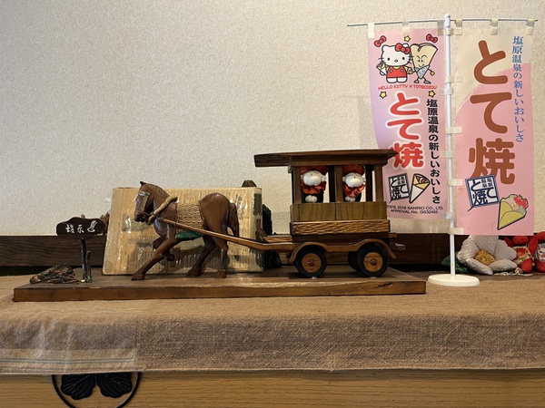 とて焼きの「とて」とは、昔塩原温泉郷を走っていた「とて馬車」から。店主の君島達己さんによると「とて馬車は20~30年くらい前まで走っていた」とのことで、わりと最近まで走っていたんですね。