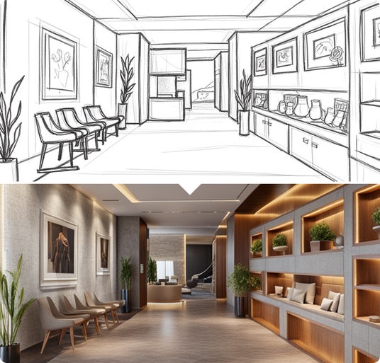 建築パース画像生成AI スケッチ1(ホテルロビー)