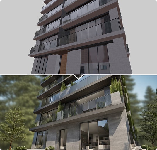 建築パース画像生成AI 3Dモデル2(マンション外観)